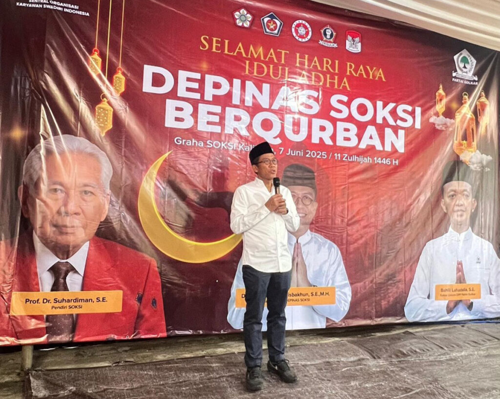 Surabaya (Tunasnews.com) — Dewan Pimpinan Daerah (Depidar) XII Sentral Organisasi Karyawan Swadiri Indonesia (SOKSI) Jawa Timur turut menyukseskan penyaluran puluhan hewan kurban dari DPD Partai Golkar Jawa Timur dalam rangka Hari Raya Iduladha 1446 Hijriah.