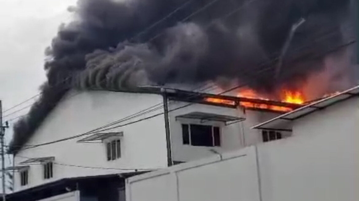 JOMBANG, Tunasnews.com — Gudang plastik yang juga berfungsi sebagai pabrik boneka di Desa Mojongapit, Kecamatan Jombang, Kabupaten Jombang, terbakar hebat pada Senin (24/11/2025) sore. Asap hitam pekat tampak membumbung tinggi dari lokasi kejadian.