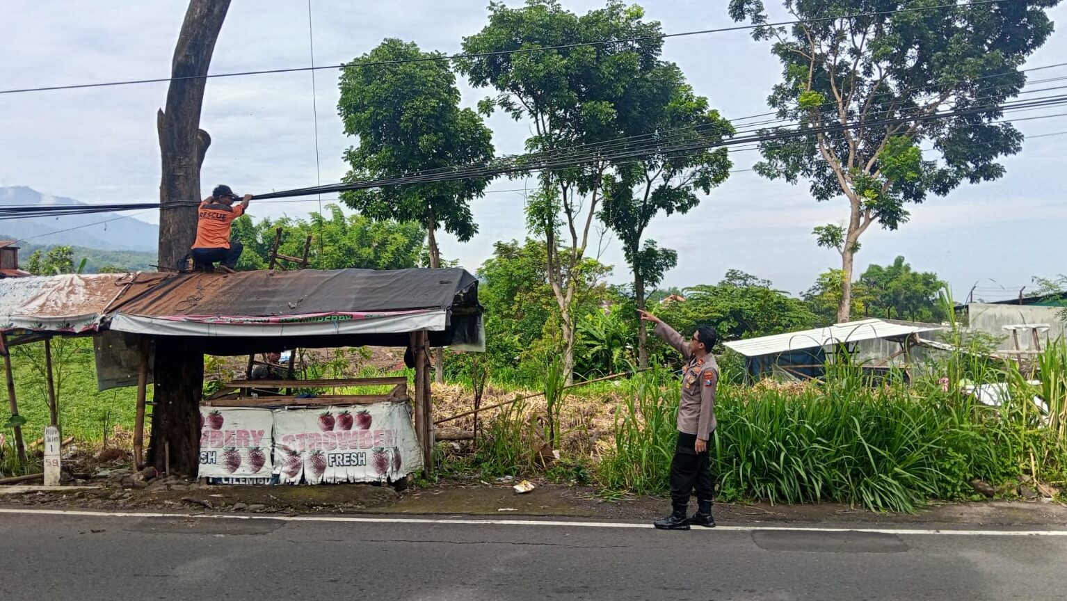 Pohon Mengering Membahayakan, Polsek Pacet Amankan Area Koperasi Susu