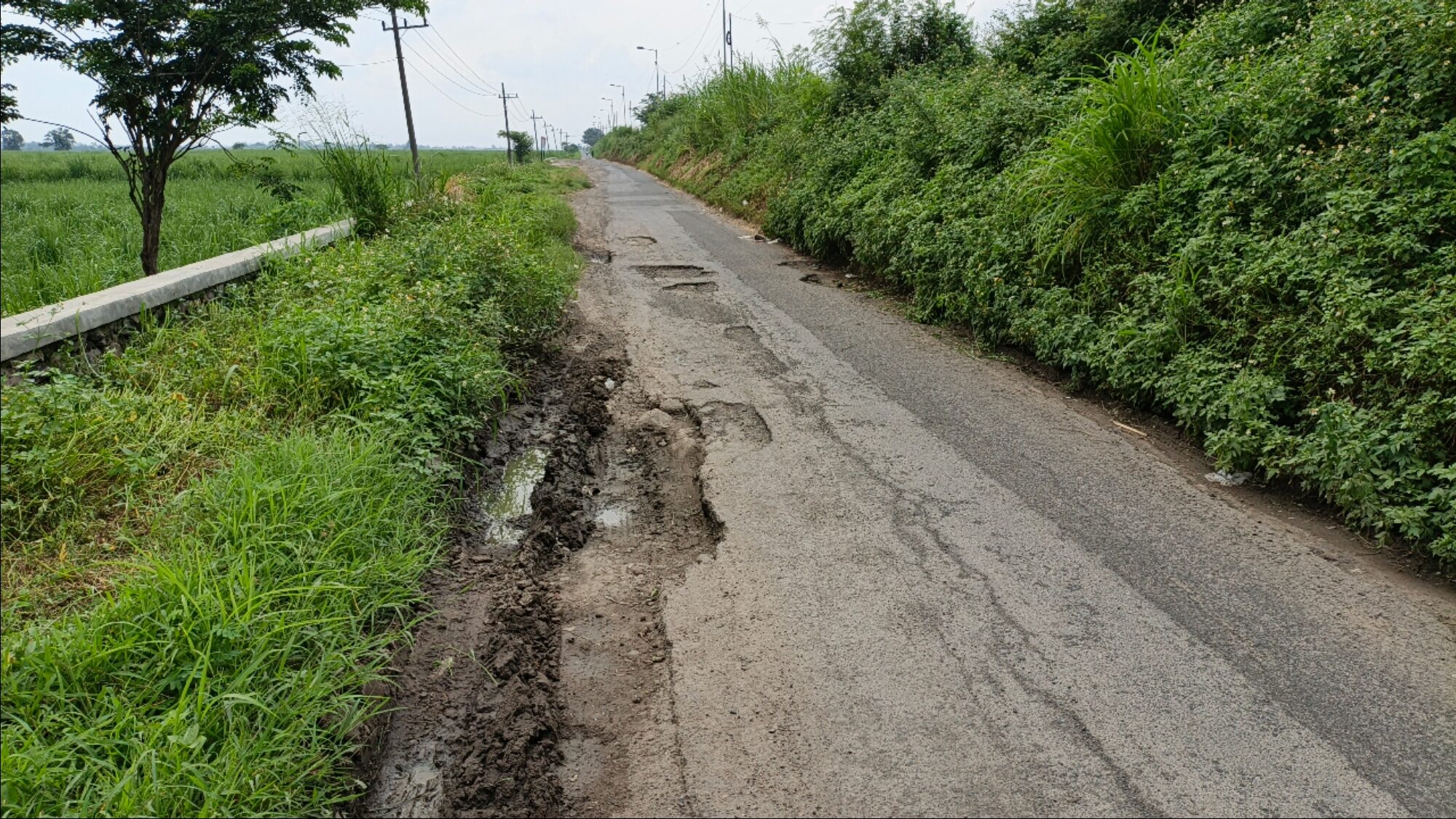 Pantauan di lapangan menunjukkan kondisi aspal jalan yang mengelupas, berlubang, dan ambles di sejumlah titik. Permukaan jalan yang tidak rata memaksa pengendara, khususnya pengguna sepeda motor, untuk melintas dengan sangat hati-hati. Saat musim hujan, lubang-lubang tersebut kerap tertutup genangan air sehingga berpotensi membahayakan pengguna jalan.