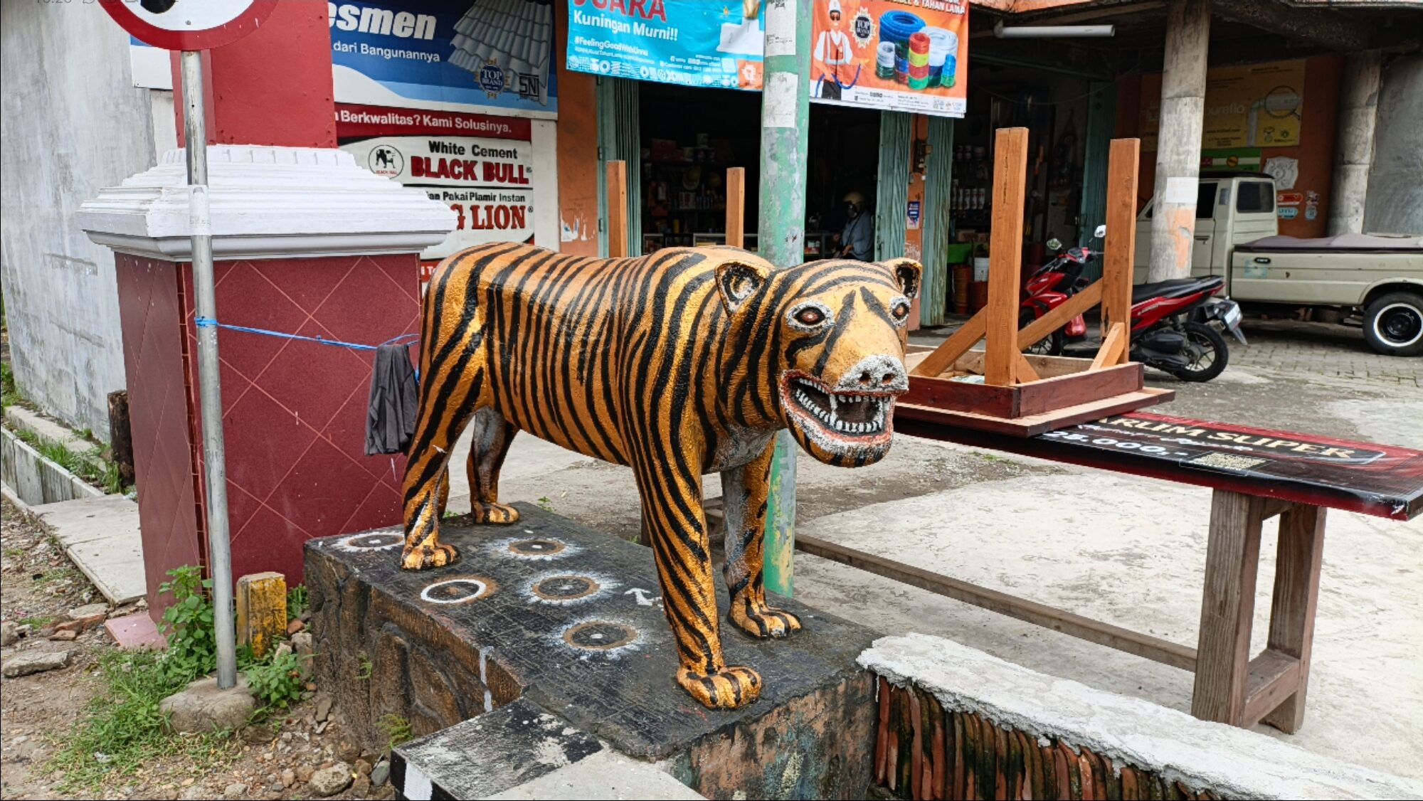“Dulu banyak anak-anak yang sulit dikendalikan. Akhirnya dibuatlah patung macan ini sebagai simbol,” tambahnya.