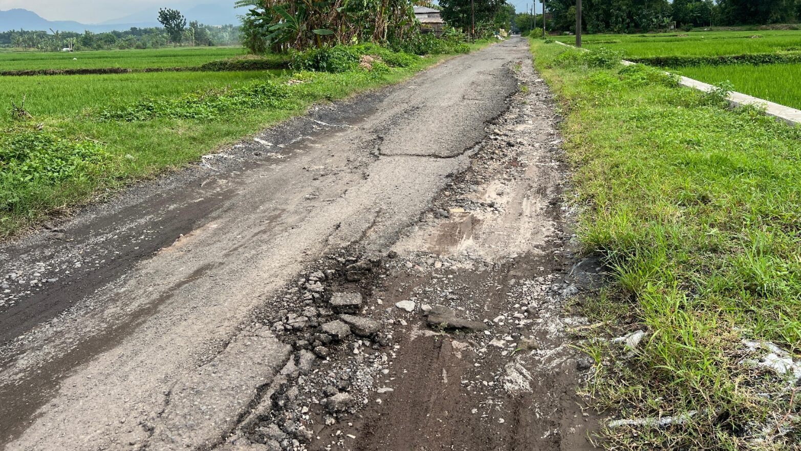 Berdasarkan pantauan di lapangan, kerusakan terjadi sepanjang kurang lebih 280 meter. Lapisan aspal tampak terkelupas, bergelombang, bahkan di beberapa titik nyaris hilang, menyisakan bebatuan dan tanah yang tergerus. Saat hujan, genangan air menutup lubang-lubang jalan sehingga membahayakan pengendara.